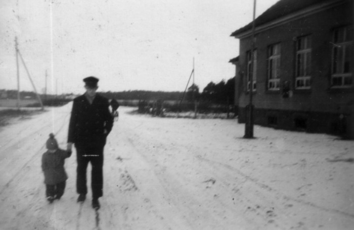 Die Hauptverkehrsstraße in Reckenfeld an der evangelischen Volksschule im Jahr 1942