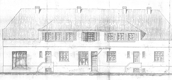 ![]() Nach diesem Entwurf wurde mit geringen Abweichungen 1928 der dreiteilige Schuppen zu einem Geschäfts- und Mehrfamilienhaus um- und ausgebaut. Quelle: Stadtarchiv Greven |