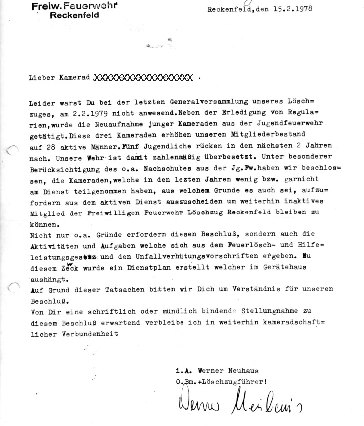 Freiwillige Feuerwehr - Löschzug Reckenfeld