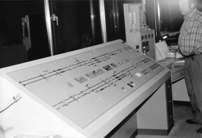 Von hier aus wurden alle Weichen und Signale der Bahnhöfe Greven, Reckenfeld und Sprakel gestellt, November 1978.