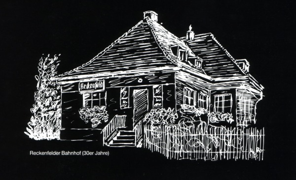 Künstlerische Darstellung des Bahnhofs aus den 1930er Jahren. |