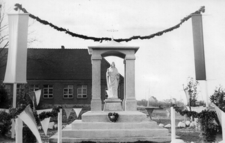 Dieses Monument stand in der Ortsmitte. Im Hintergrund die ehemalige katholische Volksschule. |