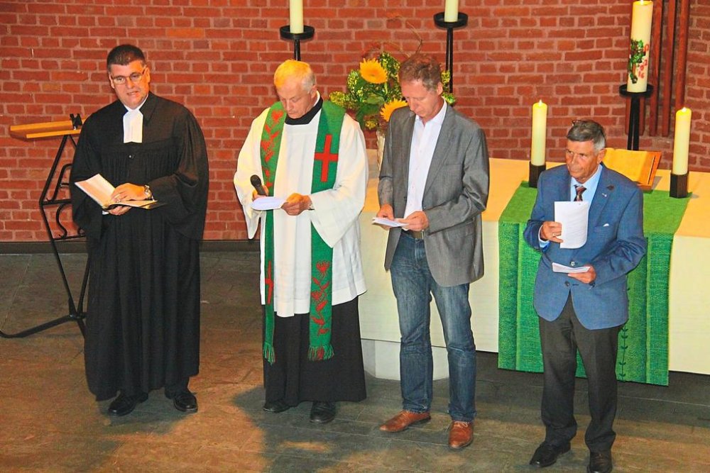 Am Sonntagmorgen fand um 11 Uhr ein ökumenischer Gottesdienst in der Erlöserkirche statt. Pastoren: Uwe Völkel (Erlösergemeinde) und Clemens Döpker (Martinuspfarre Greven)