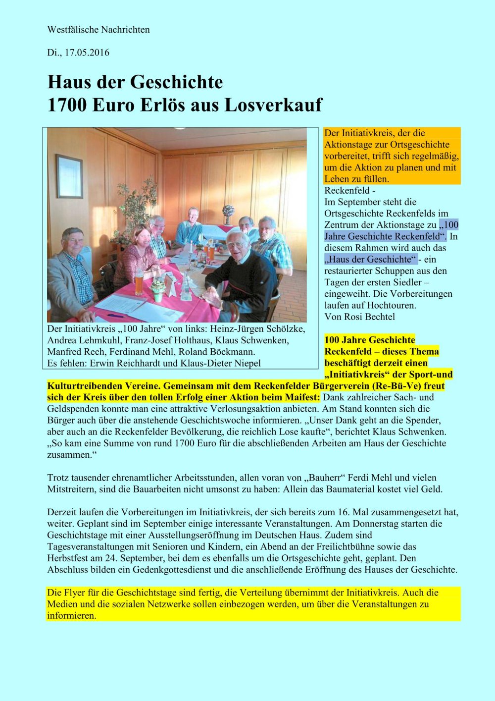 mehr als 1.000 Flyer verschickt. Die restlichen 4.000 Exemplare verteilten in Reckenfeld die Pfadfinder als auch Mitglieder des Initiativkreises.