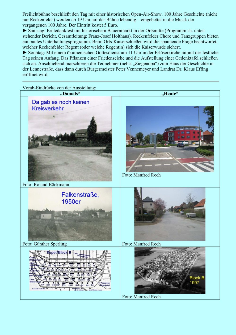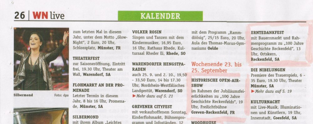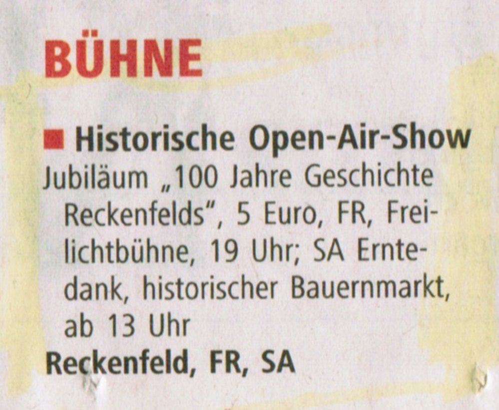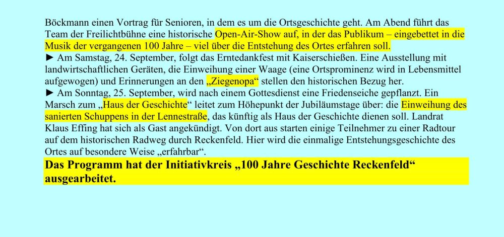 Hinweise der WN von der Redakteurin Rosi Bechtel, was die Reckenfelder an den vier Jubiläumstagen so alles erwartet.