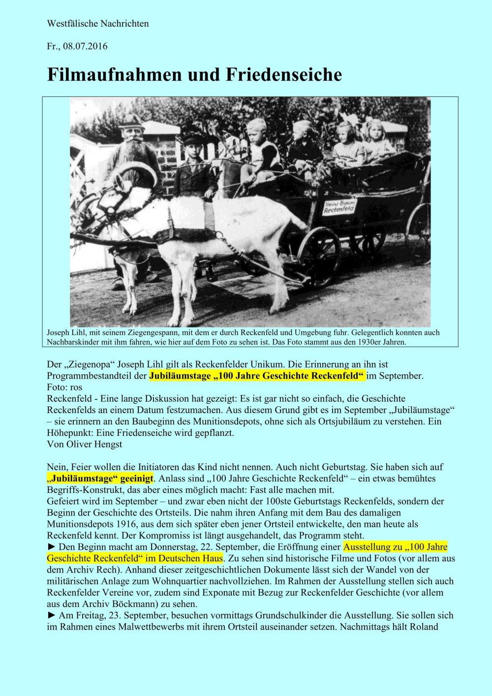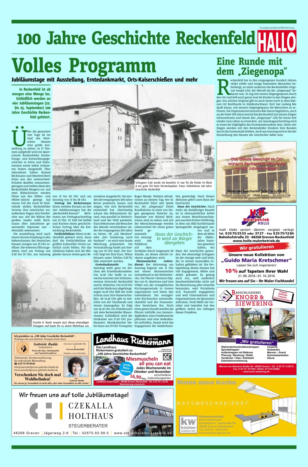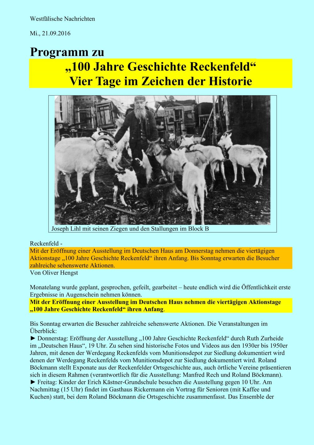 Hinweise der WN von der Redakteurin Rosi Bechtel, was die Reckenfelder an den vier Jubiläumstagen so alles erwartet.