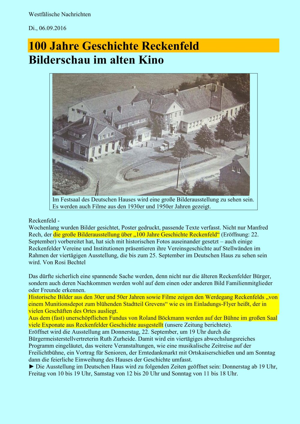 "100 Jahre Geschichte Reckenfeld"