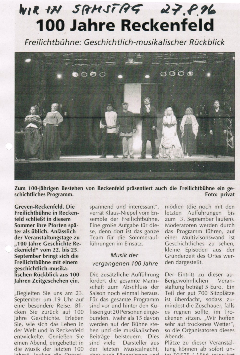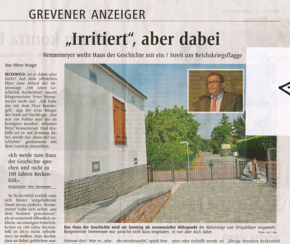 Auf Antrag von Manfred Rech machte auch die Stadt Greven auf ihrer Website Werbung für die Jubiläumstage.