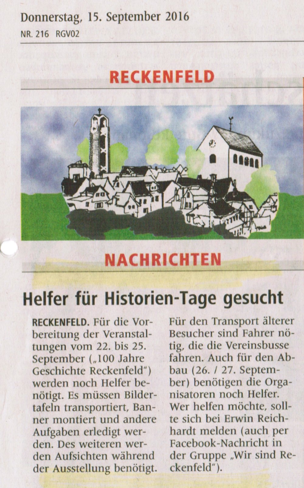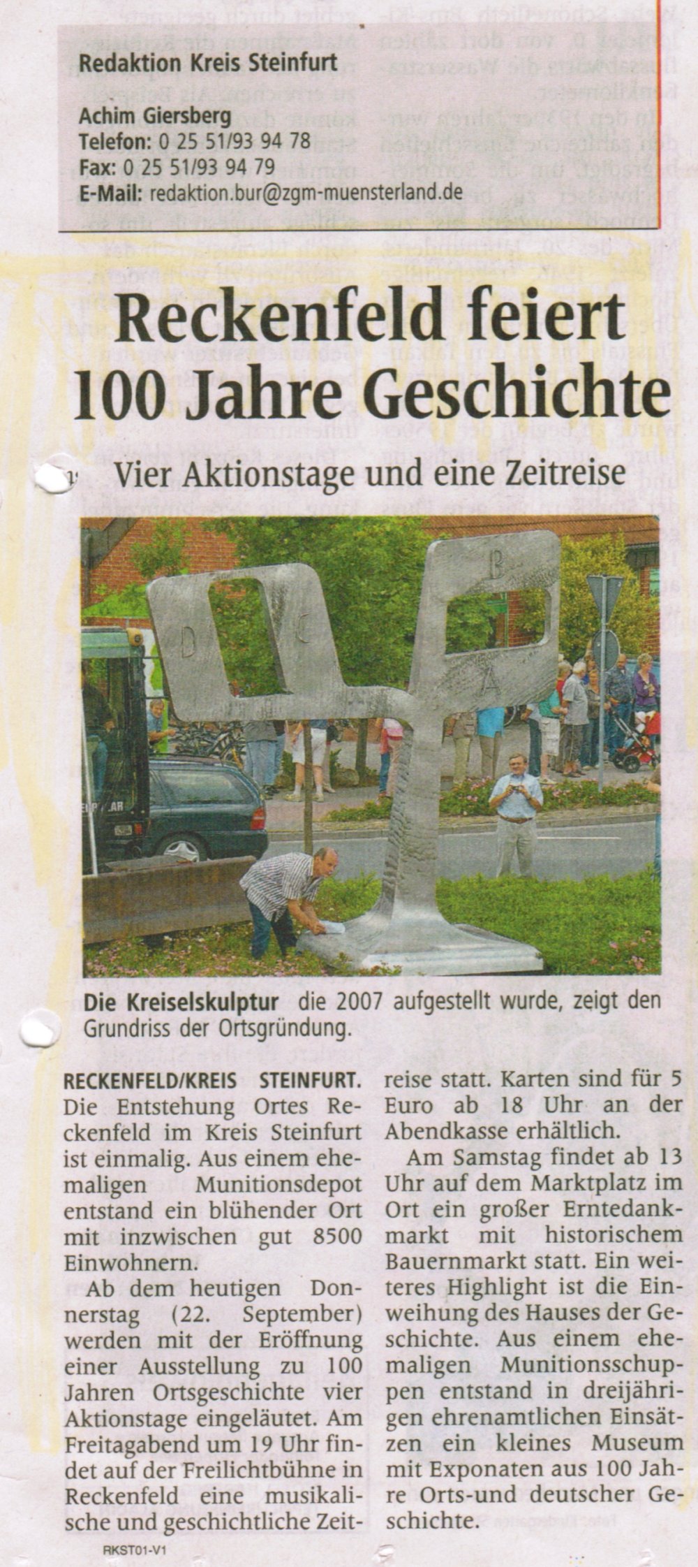 Dem Initiativkreis war klar, dass nur durch viel "Werbung in eigener Sache" die Reckenfelder/innen als auch die Menschen in den Nachbarorten auf die Jahrhundertfeier aufmerksam gemacht werden mussten. Manfred Rech nahm das in die Hand.