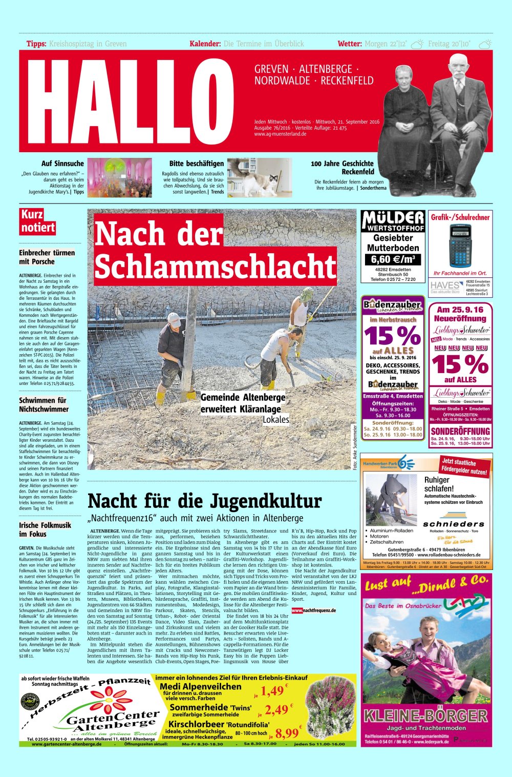Vier Feiertage kommen. Ein Bericht der WN vom 27.8.2016.