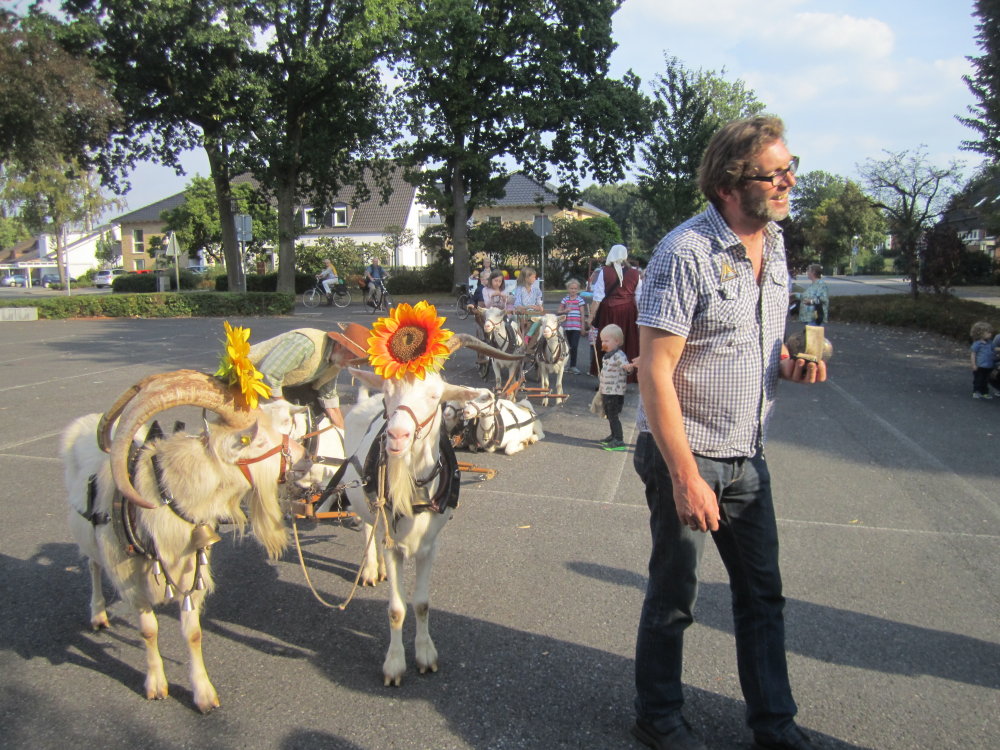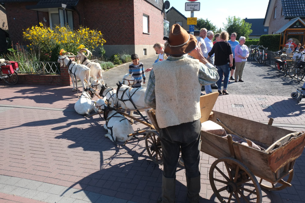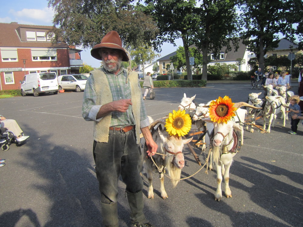 Einen Nachfolger für den "echten" Ziegenopa zu finden, war gar nicht so einfach. Ziegenhalter gibt es in Deutschland reichlich, aber Ziegen ins Geschirr zu bringen und vor einen Wagen spannen zu können, da wurde es schon schwieriger. Bis Manfred Rech von einem Verein für Ziegenzucht den entscheidenden Hinweis bekam. Und nach mehreren E-Mails und Telefonaten, kam dann die Zusage: "Ich werde mit meinem Ziegengespann zu Euch nach Reckenfeld kommen". Und er hielt Wort.