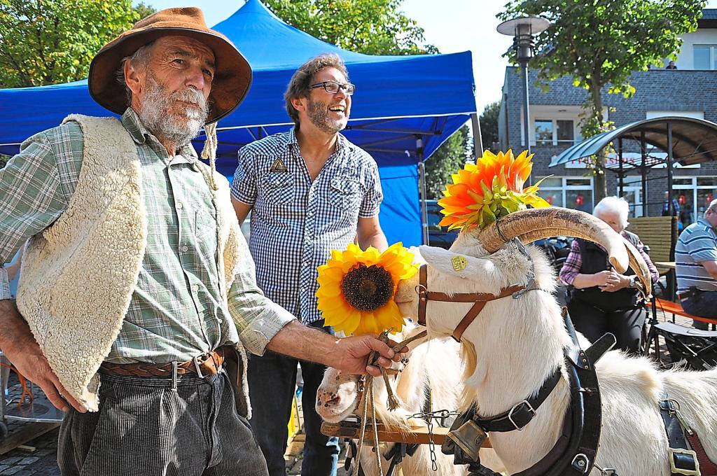 Er kam, der Herr Bär, mit seinen Ziegen. Ludwig Bär reiste mit seiner Partnerin und seinen Ziegen aus Süddeutschland an, um den Reckenfelder "Ziegenopa" darzustellen.