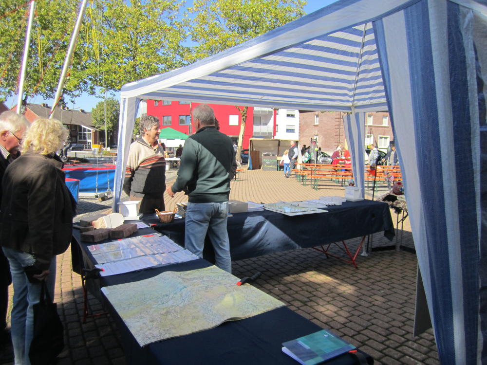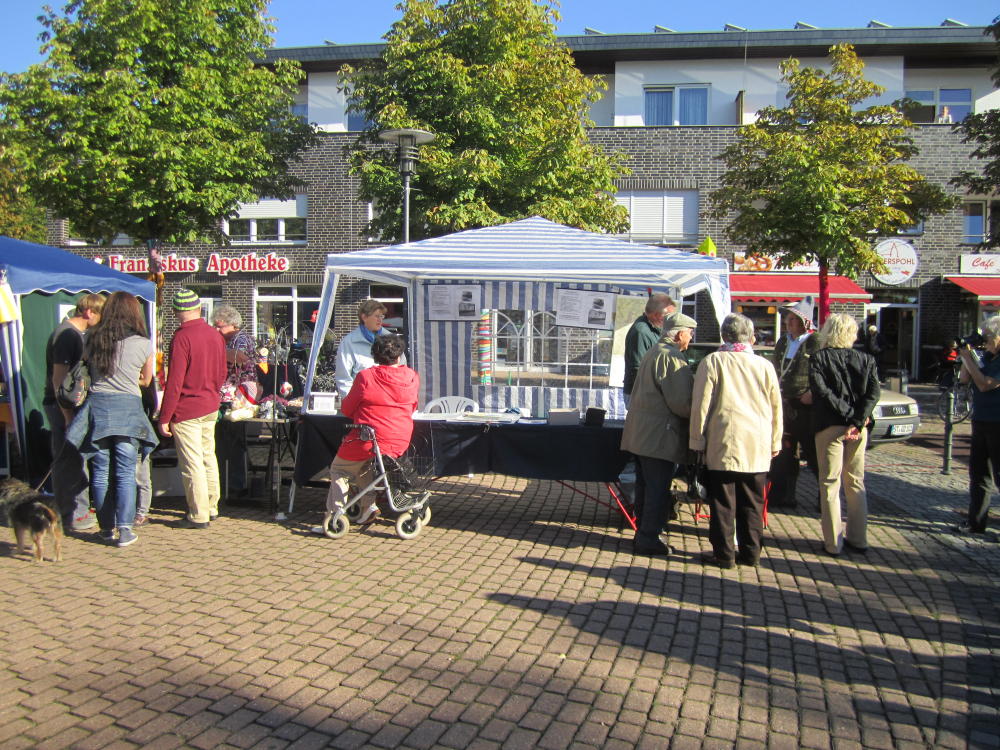 Haus der GeschichteErneut "Geldregen" für das Haus der Geschichte auf dem Herbstmarkt im September 2013:Das kam für den Schuppbenboss Ferdinand Mehl doch sehr überraschend: Die Strickdamen aus der Aktion "Stricken für 30 Bäume auf dem Marktplatz" übergaben ihm 500 EURO! Na, wenn das nichts ist...Die zweite Aktion auf dem Herbstmarkt organisierte Manfred Rech durch den Verkauf seiner bisher im Keller abgelegten "Reckenfeld-Artikel". Der Verkaufserlös über 200 EURO kommt ebenfalls dem Haus der Geschichte zu Gute.Und hier drei Fotos vom Verkaufsstand, der von Ferdi Mehl und Manfred Rech besetzt war: