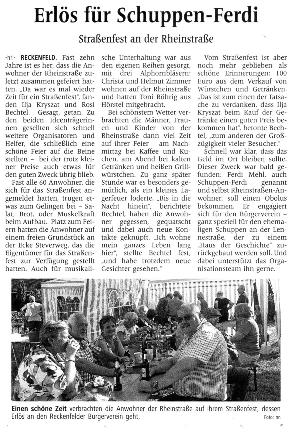 Haus der GeschichteUm das "Haus der Geschichte" realisieren zu können, werden Spendengelder dringend benötigt.Aber auch über "eigene" Aktionen muss Geld herbeigeschafft werden. Als gutes Beispiel dient hier eine Nachbarschaftsfete der Rheinstraßenbewohner:Die Westfälischen Nachrichten berichteten davon: Anlieger der Rheinstraße im Block C, die beim Verkauf von Würstchen und Kaltgetränken "Moos" überbehielten und 100 Euro für das Haus der Geschichte spendeten.
