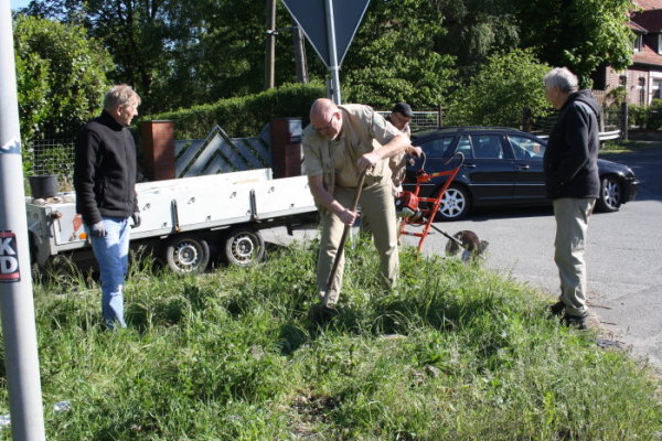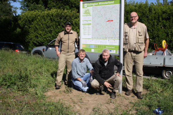 Die Akteure vom Reckenfelder Bürgerverein: Klaus Schwenken sorgte für die Verbindung zur Stadt und zur Firma Häder. Jürgen Otto und Ludger Mussenbrock waren für die "Maloche" zuständig. Manfred Rech machte die Fotos. Und vom Betriebshof stand ein freundlicher Mitarbeiter zur Verfügung.