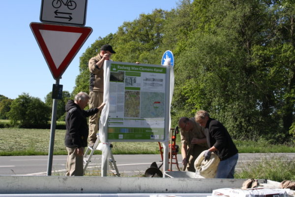 Der Re-Bü-Ve hat die Gelegenheit genutzt, um Reckenfeld auf der Tafel besonders darzustellen, was auch gelang. Ferdi Mehl und Manfred Rech legten dem Kreis Steinfurt Abbildungen und Texte vor, die dann auch übernommen wurden und auf der Tafel - ganz oben - zu erkennen sind.