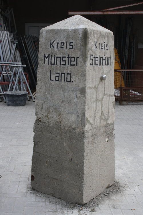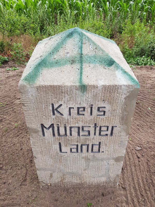 Zu a): Der Grenzstein, wie uns die Kreisverwaltung mitteilte, ist eigentlich eine Grenzmarkierung. Es standen einige davon in den Kreisen Münster Land und Steinfurt. Sie sollten den Landwirten, Wanderern und sonstigen Personen Hinweise geben, wo sie sich zur Zeit befanden.