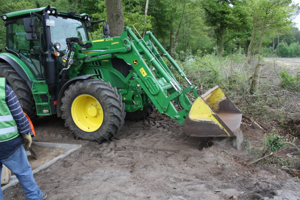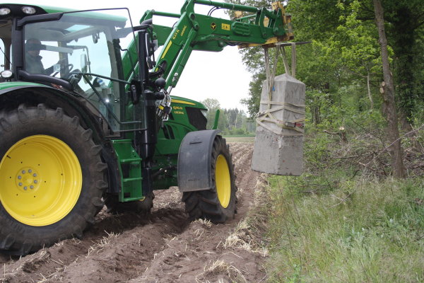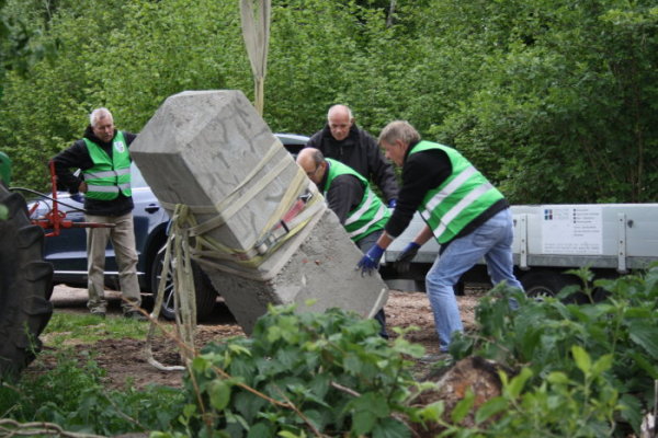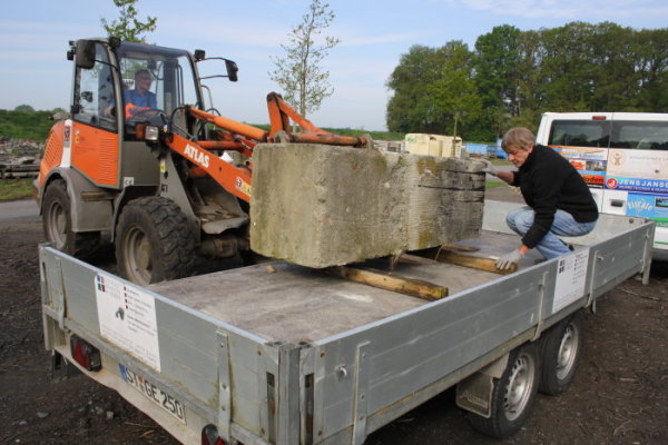 Und nun ging es dem Ein-Ein-Halb-Tonner, dem Grenzstein, an den Kragen. Möglich gemacht hat das mit schwerem Gerät der Landwirt Norbert Heitmann aus Herbern: