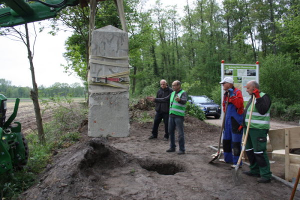 Als das Thema "Radweg entlang des MCK" aufkam, wurde zunächst gedanklich der Stein "ins Leben zurückgeholt". Praktisch geschah nun, dass Mittel (Geld) und Wege (Engagement) gefunden wurden, den Grenzstein an seinen Ursprungsplatz am MCK zurückzubringen. Der Re-Bü-Ve wurde aktiv und das ist aus dem Grenzstein (nochmals, der Grenzmarkierung) geworden: