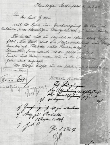 1927 beantragte Herr Wellmann das im Block D vorhandene Abort in ein Wohnhaus (Laden) umbauen zu können.