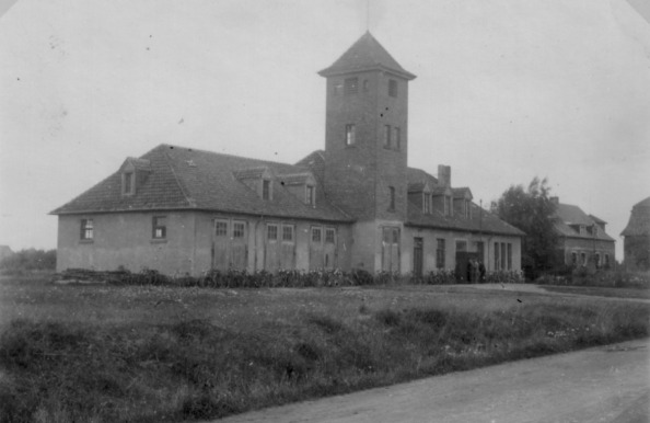 Katholische Kirche bis 1936Diese bisher noch nicht veröffentlichte Aufnahme zeigt neben der ehemaligen Feuerwache auch das ehemalige Wasch- und Abortgebäude. Da viele Fahrräder vor der ehemaligen Feuerwache stehen, scheint das Foto aus der Zeit zu sein, als die Reckenfelder Katholiken dort ihre Kirche hatten. |
