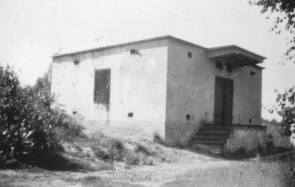 Original SchuppenAn diesem Schuppen ist fast alles noch vorhanden. Selbst die Fensterluken und das 2-Meter-breite-Tor sind erkennbar. Es fehlen allerdings die Blitzableiteranlage und die Außenleitungen für die Lichtanlage. |