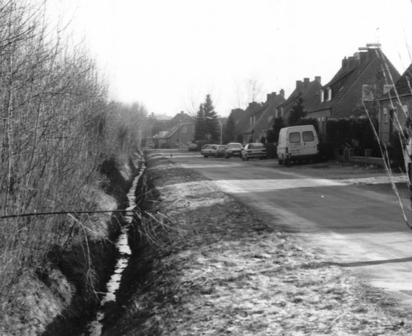 Verbindung 'C nach D'Auch die Elbestraße und der Sandweg verbinden die beiden Blöcke C und D. Block D im Hintergrund. Rechts, die Heimstättensiedlung, gebaut in den 1950er Jahren. Und, wie könnte auch sonst sein, das Markenzeichen Reckenfelds: Die Gräben! |