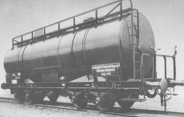 Ein Teerkesselwagen zur Anlieferung der Rohmaterialen.