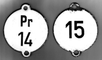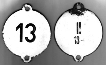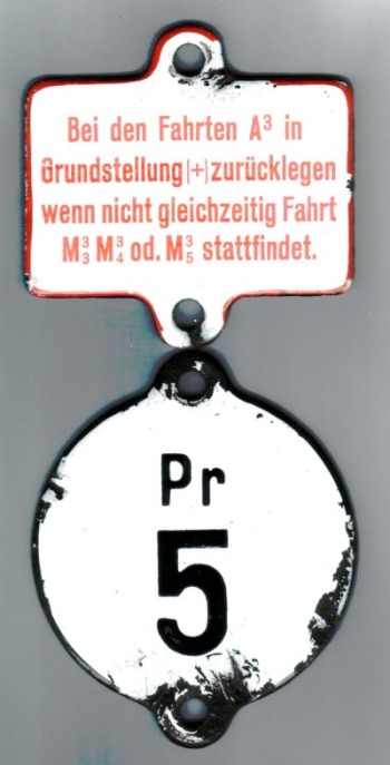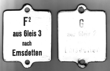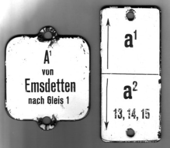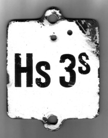 Echte Raritäten sind die Schilder der Stellhebel aus der Zeit des Ersten Weltkrieges, die im damaligen Bahnhof Hembergen Verwendung gefunden hatten. Hier das Schild des Gleissperrsignal Hs3s.