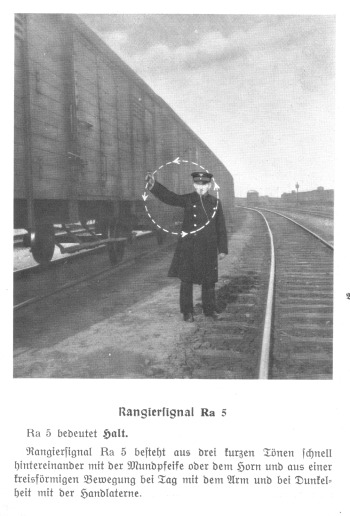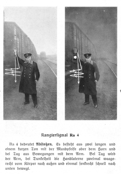 Rangiersignal "Abstoßen". Aus Signalbuch der Deutschen Reichsbahn 1938. Quelle: Siepert |
