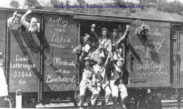 Deutsche Soldaten ziehen in den Krieg, 1914