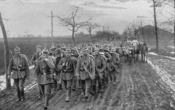 Abgelöste Batterie geht in Ruhequartier. 1915