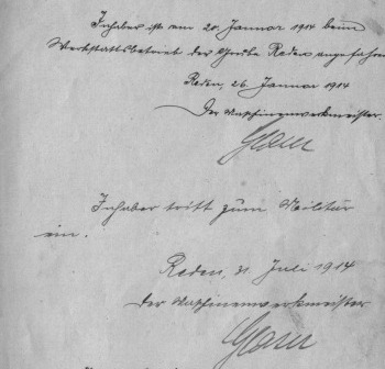 Sein Arbeitgeber entließ am 31. Juli 1914 Friedrich Grohe zum Militär.