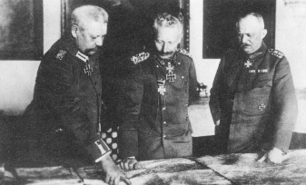Die 3. Oberste Heeresleitung mit dem Kaiser in der Mitte.