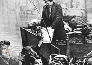 Tausch von Kohle gegen Kartoffelschalen im Kriegswinter 1916/1917.