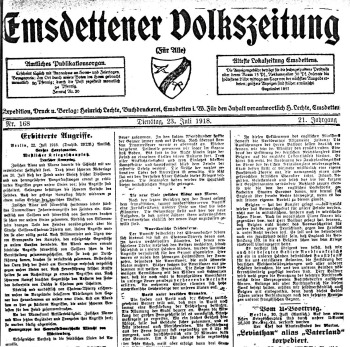 Die Emsdettener Volkszeitung vom 23. Juli 1918.