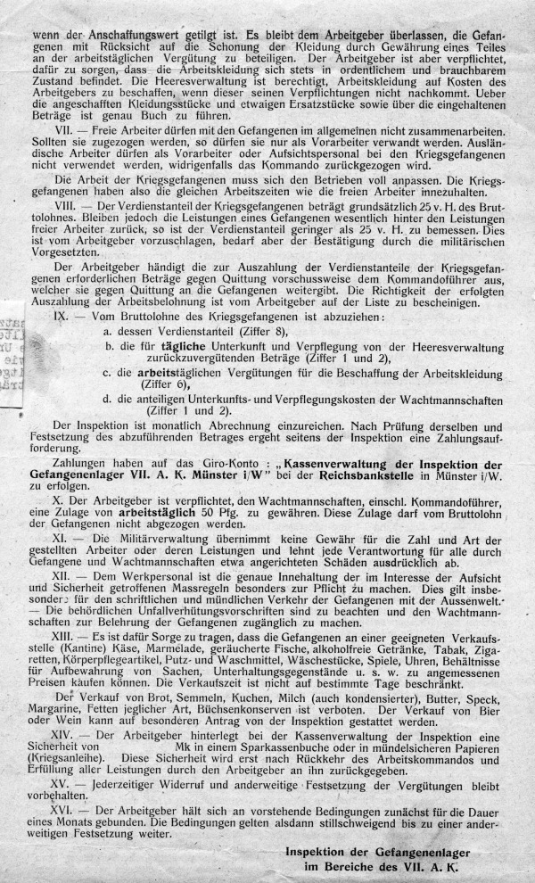Zwei Unterlagen über die Abrechnungen für Kriegsgefangenen.