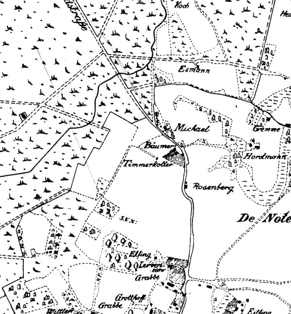 Lage und Standort des Reckenfelderbäumer (Bäumer) an der Rheineschen Landstraße