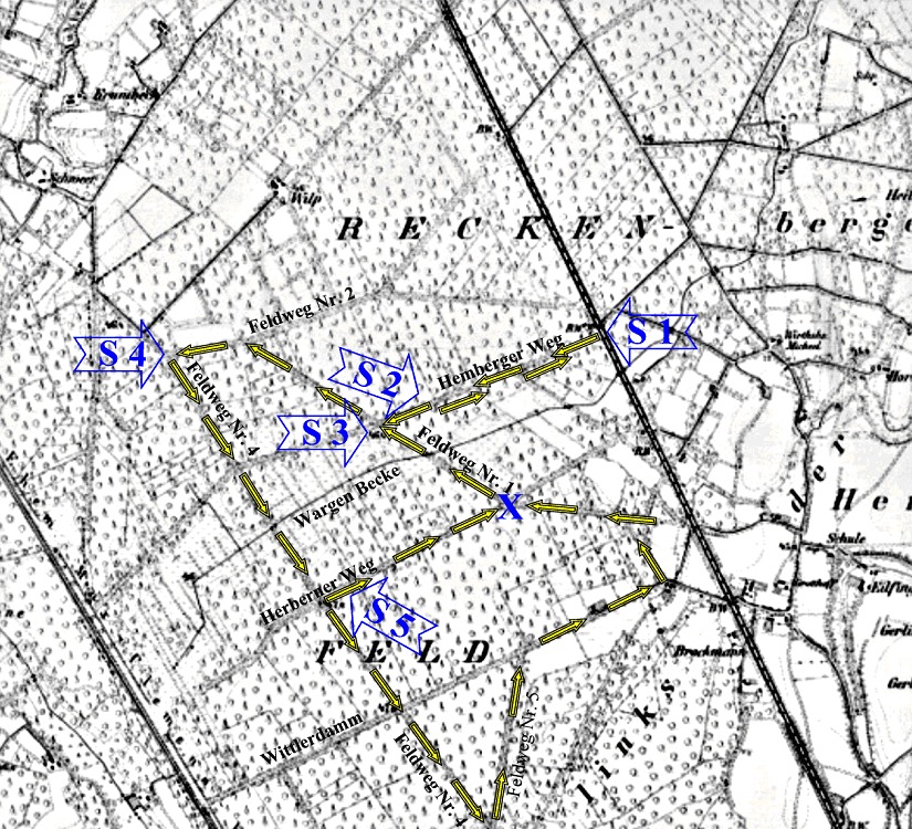 Marienfriedstraße und in Fortsetzung ein Feldweg ohne Bezeichnung |