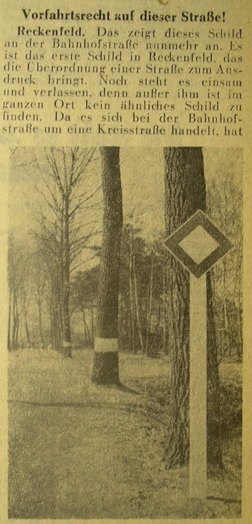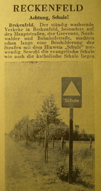 Die ersten beiden Verkehrsschilder in Reckenfeld: 1956
