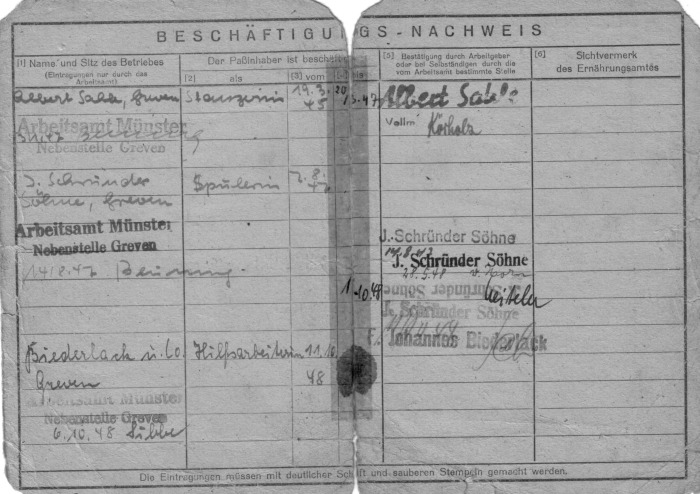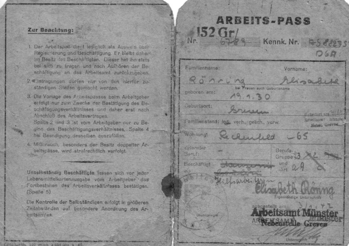 1945: Arbeitspass für eine gewerblich Berufstätige