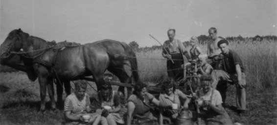 Kartoffelernte mit Pferd und Wagen und vielen fleißigen Händen