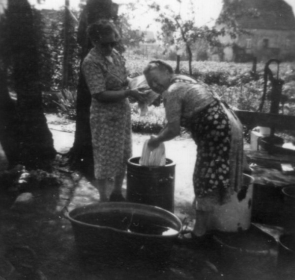Das Wäschewaschen musste zum Teil draußen erledigt werden. Das frische Wasser wurde aus dem eigenen Brunnen gepumpt