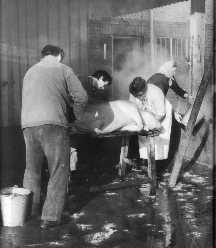 Hausschlachtung gehörte auch in Reckenfeld zu den Standardaufgaben in der kalten Jahreszeit. Das galt aber nur für die, die sich ein Schwein halten konnten.