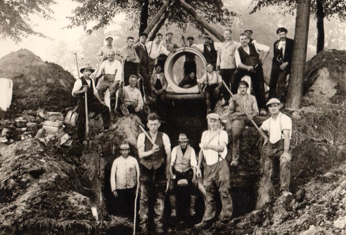 Rechts: Reckenfelder meldeten sich, als es 1932 in Greven Notstandsarbeiten zu verrichten gab. Wer keine Scheu vor dem Arbeiten hatte, meldete sich. So auch Bernhard Schmücker (links sitzend).