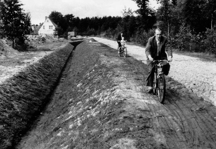 "Der Wunsch nach einer ausgebauten Straße, die allen Anforderungen gerecht wurde, blieb aber nur Wunschdenken. Erst Mitte der 1970er Jahre wurde das Thema wieder konkreter und zumindest die Grundstücksverhandlungen wurden erfolgreich abgeschlossen. Wegen der kommunalen Reform wurden die Pläne aber zunächst wieder auf Eis gelegt, obwohl der damalige Kreis Münster-Land schon die Trasse durch Holzschlag markierte. Gebaut wurde die neue Straße dann Anfang der 1980er Jahre. Im Sommer 1982 wurde sie eingeweiht. Damit wurde eine dringend benötigte Verbindung nach und von Greven für alle Reckenfelder verwirklicht."