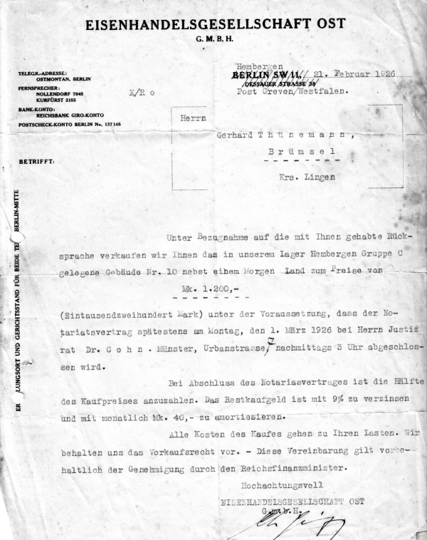 Wer kaufte den Schuppen und das dazugehörige Grundstück? |