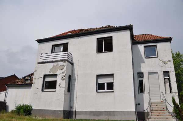 ![]() Die Aufnahme von dem leerstehenden Haus, Teil des ehemaligen Schuppens A 6, wurde 2001 gemacht. Abgebrochen wurde das Haus jedoch erst im Jahr 2009.Wollen Sie mehr über diesen Schuppen wissen, dann hier! Die obere Aufnahme stammt aus dem Jahr 1996. Der Schuppen hatte die Nr. 15 im Block A. Drei Jahre später (1999) - und zwar im Juni - wurde das ehemalige Wohnhaus und die Bäckerei der Famlie Merschkötter abgebrochen.Wollen Sie mehr über diesen Schuppen wissen, dann hier!