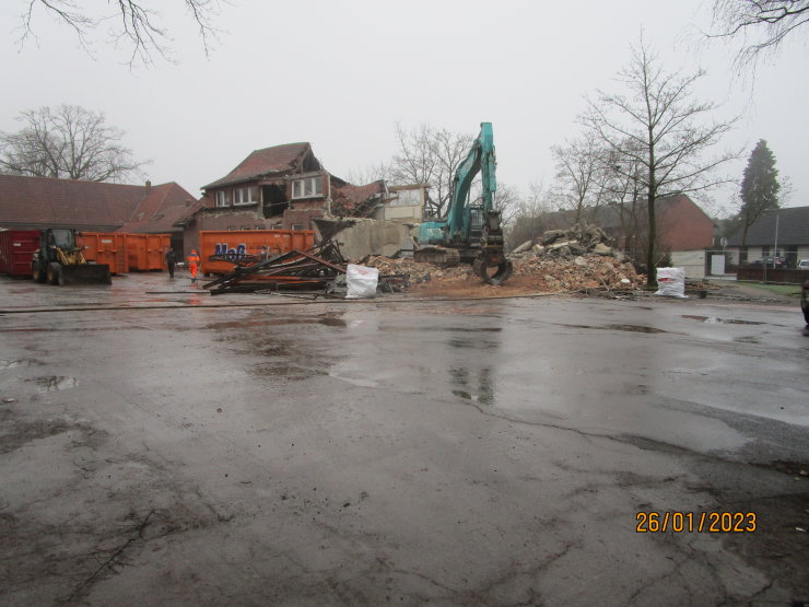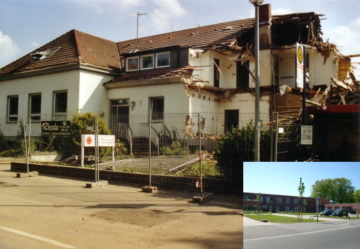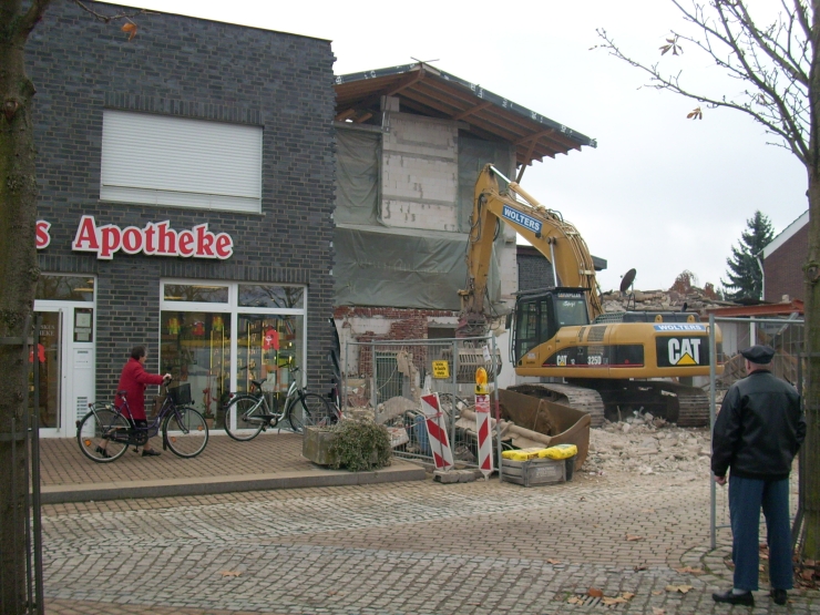 ![]() In der Ortsmitte wurde in mehreren Schritten das "Haus Kocker" und ein Teil der danebenstehenden Gebäude abgerissen und ein neuer Gebäudekomplex im Jahr 2007 erstellt.Einige Auszüge aus dem Umbruch: