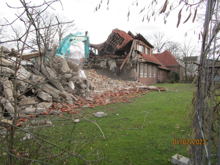 Im Mai 2007 wurde dieser ehemalige zu einem großen Wohnhaus ausgebaute Schuppen zu einem Teil (ein Fünftel) abgebrochen. Dieses Haus war bis dahin, der einzig vorhandene und ausgebaute 50-Meter-lange Schuppen in Reckenfeld, mit der Depotbezeichung A 25.Wollen Sie mehr über diesen Schuppen wissen, dann hier!